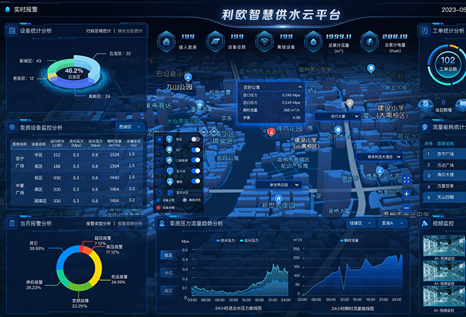 綜合設(shè)備運(yùn)行狀態(tài)、實時數(shù)據(jù)、門禁開關(guān)、圖像監(jiān)控,紅外監(jiān)測與高清視頻聯(lián)動,來人自動抓拍,遠(yuǎn)程報警,保障水質(zhì)安全、設(shè)備安全以及泵房環(huán)境安全;